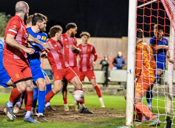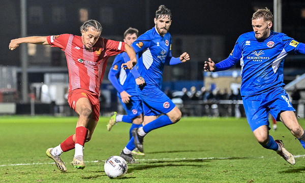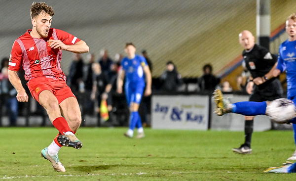 Ed Palmer broke out from his defensive role for Truro and went on a long run before shooting straight at Charles-Cook. However, the visitors equalised soon after with a spectacular shot out of the blue by Harvey.