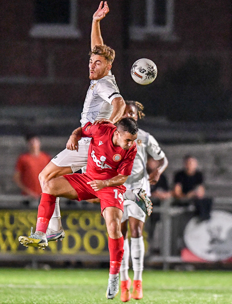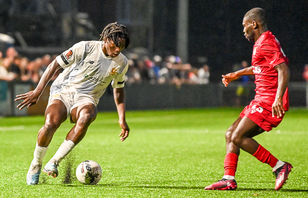 Worthing’s Joel Colbran fired well over from distance before a long range shot by Odusanya failed to trouble Rocco Rees, the Rebels’ goalkeeper.