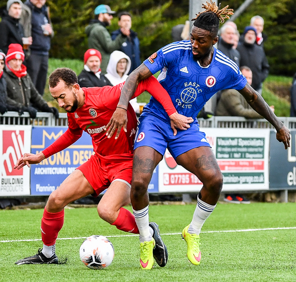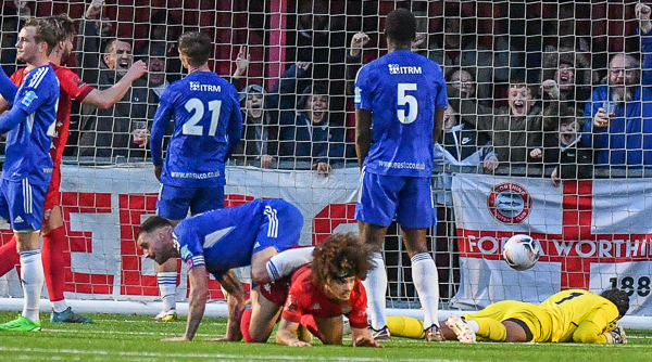 Soon after, Worthing went ahead. Roberts went for a high ball but collided with Manny Parry and it fell kindly for Pearce to roll into the empty net.