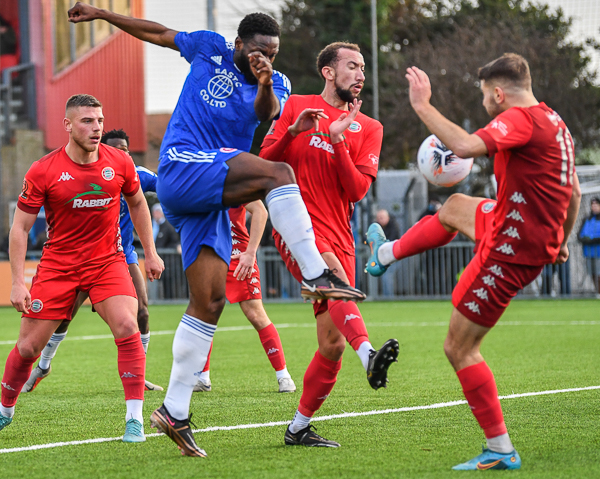 At the other end Taylor Maloney had a shot that was knocked out as far as Amadou Kassarate who turned and shot just wide. However, Worthing were soon on the attack again when Ollie Pearce went on a long run unopposed. He laid it off for debutant loanee Davide Rodari and he drew a great save out of Myles Roberts.