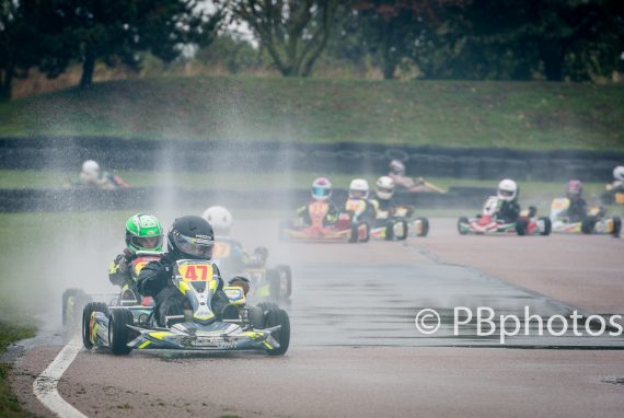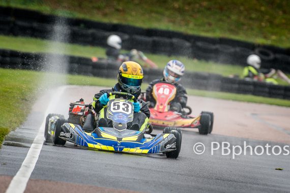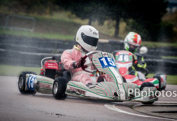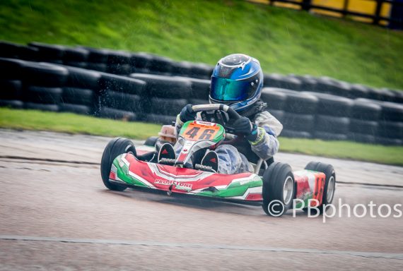 Practice and qualifying began with the rain still beating down, causing a few karts to suffer gremlins when driving through the standing water, gradually though the water was dispersed and each class was given a Heat/Pre final and then a Grand final, with the MSA Bambinos allowed three timed runs in-between.