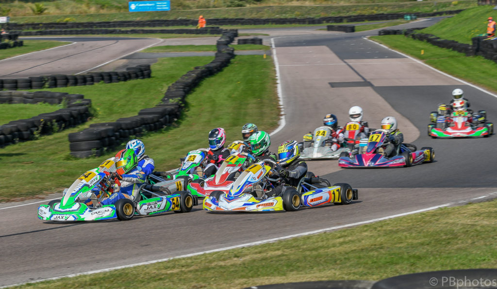 For the main final the circuit maximum grid of 24 karts took a couple of attempts to form a clean rolling start as Jonathan Harrison had pulled off and retired at the end of the infield straight.