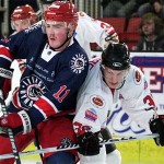 In the final frame the Dynamos found their hopes of another comeback dented as two goal defenceman Tim Smith was left unable to play any further part in the tie following a fierce hit from Raiders’ ‘import’ Jiri Hanzal. Those hopes then only further diminished as the hosts struck twice in the space of six minutes to secure a comfortable three goal cushion. Richard Facey’s pass set up Jiri Hanzal whose strike was contested by netminder David Wride but awarded with the officials declaring a goal to make it 4-2.