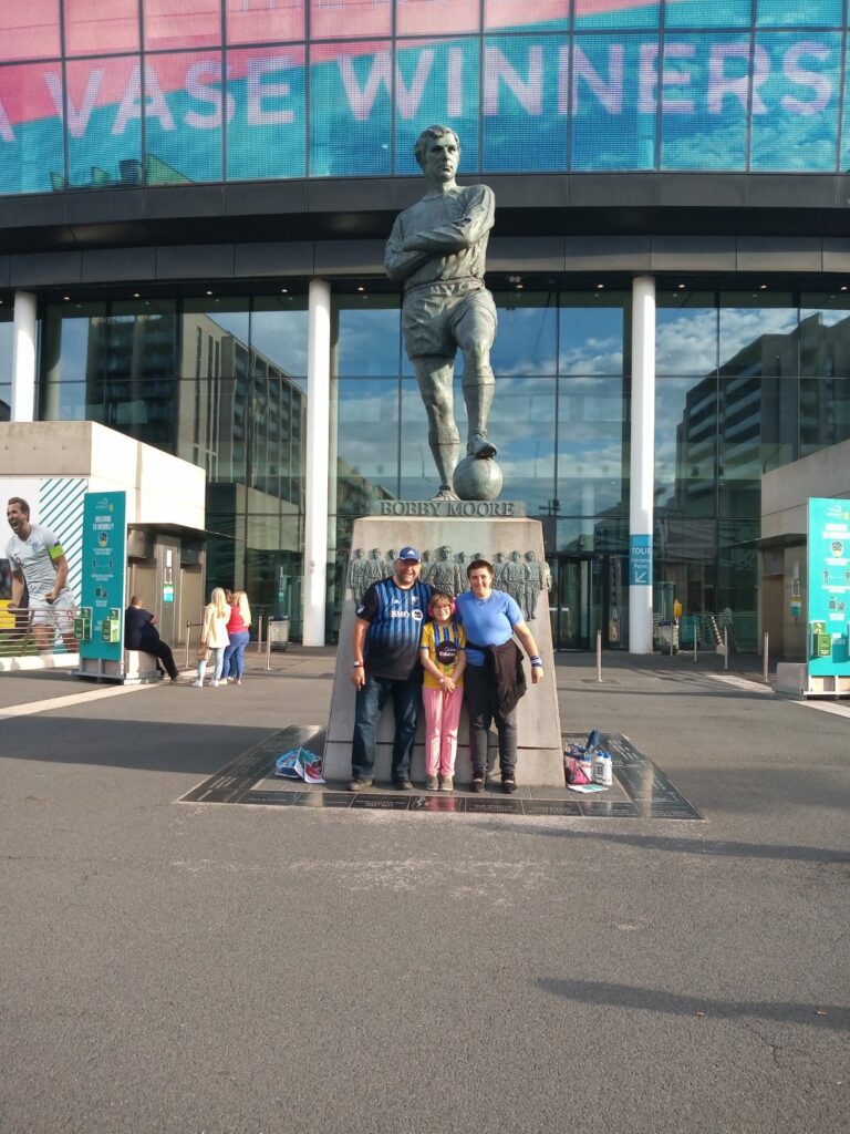 Before all that began, there were the sightseeing pictures – the girls both gazing down Wembley Way; by the side of the Wembley sign at the foot of the Arch and of course the statue of Bobby Moore – before entry into the ground and meeting with a Kent footballing legend.