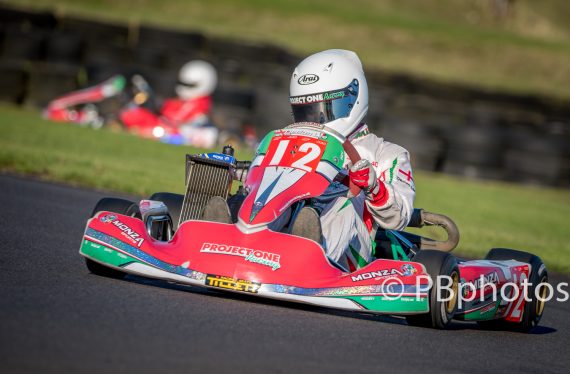 Project One drivers dominated in the new Junior Club Max class, with Declan Lee, Zac Spence and William Egby taking the top three places in both Pre Finals and the Grand Final. Lee comfortably pulled away to a 4.2 second win in the final, Spence showed well in second place as did Egby close behind in third. James Black drove up from the back setting some very quick laps only just shy of winner’s Lee’s best – to finish fourth, a good omen for the future for the personable young lad. Jack Richards was comfortable in fifth after running in front of Black earlier on.