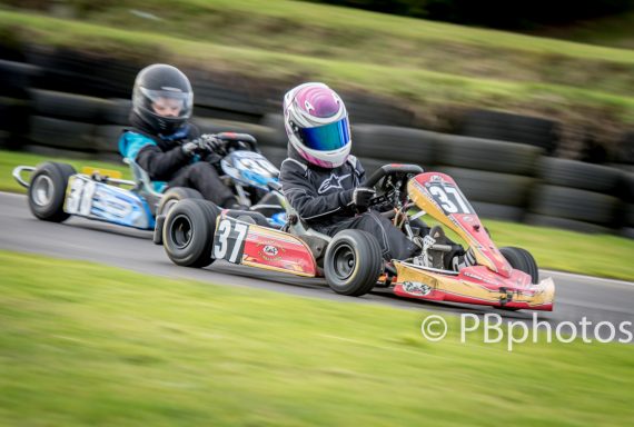 Five of the young Bambino class drivers took part in their three timed runs during the day, the early morning moisture having an adverse effect on a few of their delicate little engines. Jayden Sherwood’s Clarke kart proved fastest in all of the sessions, managing to keep his engine’s revs up through the tight infield sections the best and not losing too much momentum.