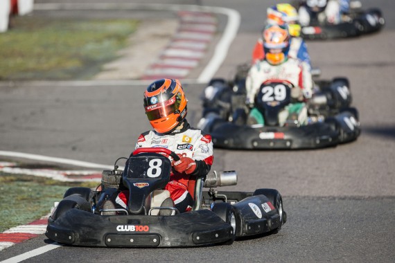 With the grids set for the afternoons races, and the karts changed back to slick tyres, the days race action began with the Pre-B final. From the drop of the green flag Bobby Thompson led the field, but he was stalked by Max Coates who would hold station and follow him to the end, allowing both to qualify for the Pre-A Final. Behind them, the battles raged on.