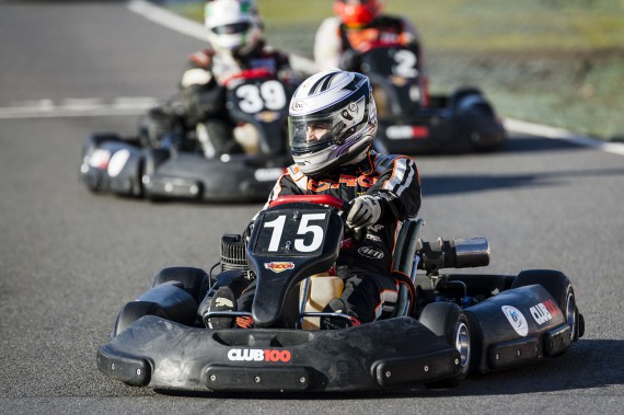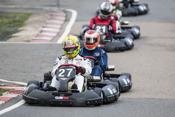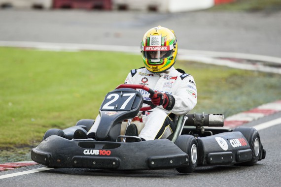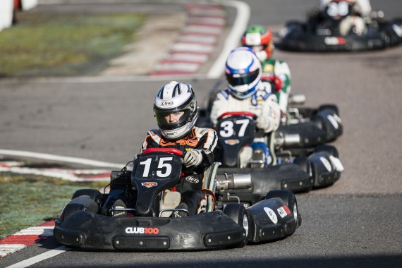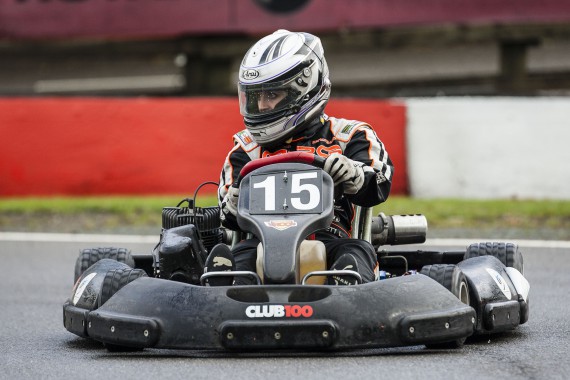 With rain in the forecast, the Club 100 karts came prepared with each kart equipped with a set of wet weather tyres, which were a welcomed call for all drivers out in morning practice. With persistent rain all morning, the drivers quickly came to grips with how to muscle these 2-stroke karts around a soggy Buckmore Park. But all of this wet track time was quickly eradicated, come the lunch break, in which the rain stopped and the track surface began drying.