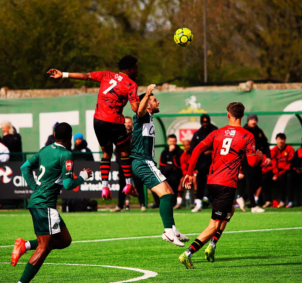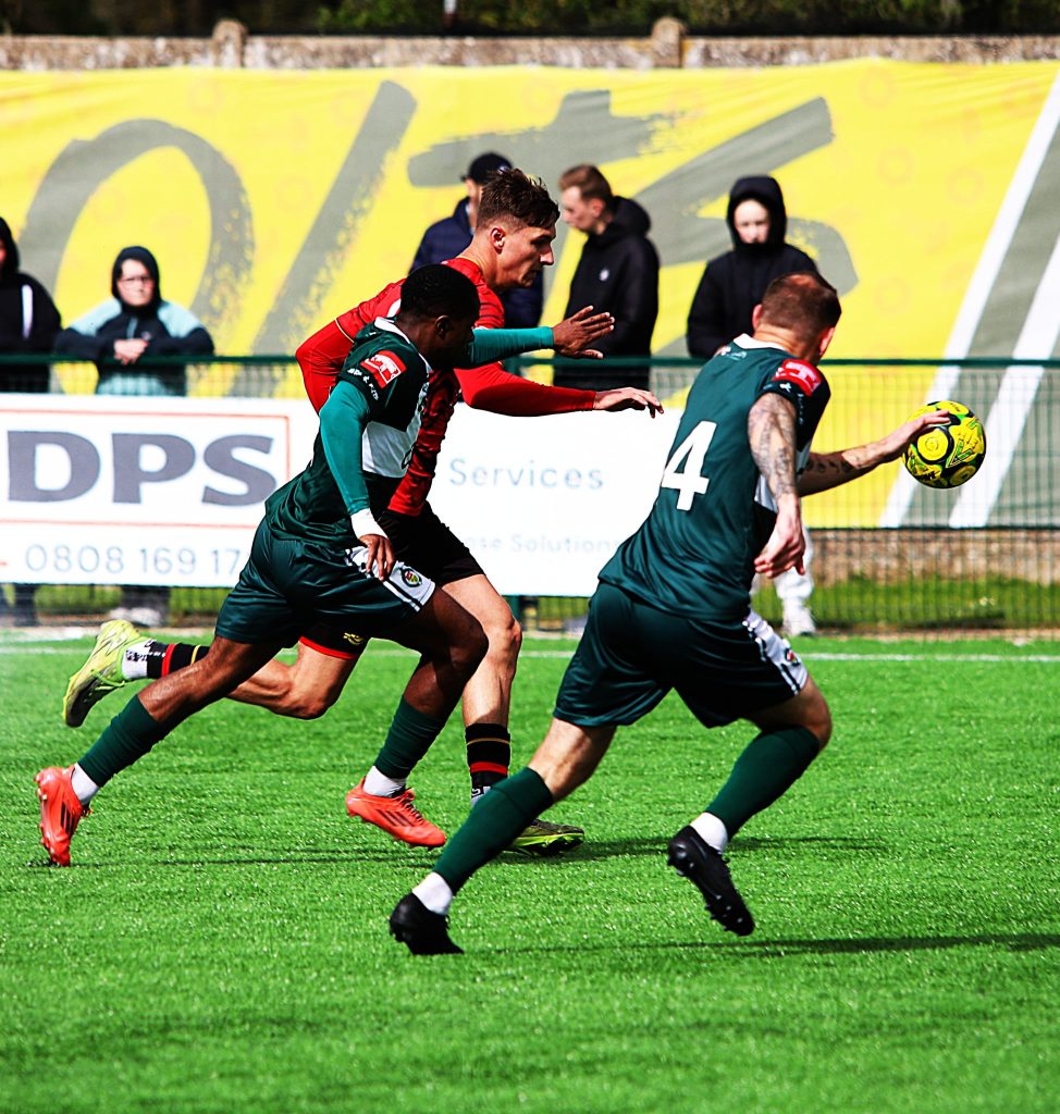 Kicking with the gusting wind at their backs in the first half, Sittingbourne created the chances but couldn’t force the ball into the net.