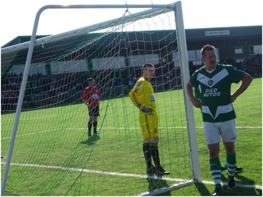In the 15th minute they nearly got the goal they craved for when Dave Botterill’s free kick into the area found central defender Pat Kingwell on his own 8 yards out & his header forced Michael Elder to push it over the bar.