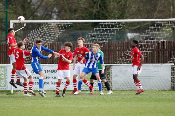 There were early chances at both ends. Emmings went close for Aylesford – forcing a great save out of keeper Daniel Sugarman – whilst confusion between keeper Ben Folkard and his defence almost let Charlie Falukener in only for Folkard to redeem himself with a fine low save denying Scott Henderson.