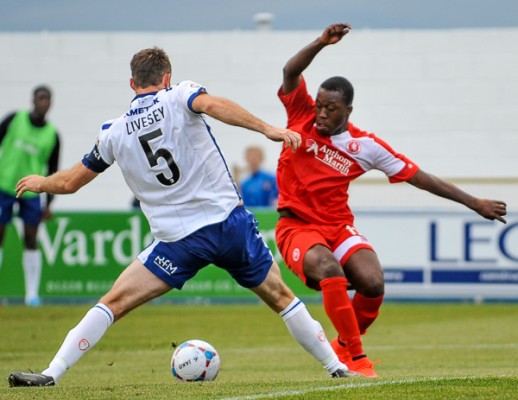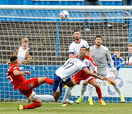 Early on, he headed wide from Andy Haworth’s cross before another header tested Tom King for the first time.