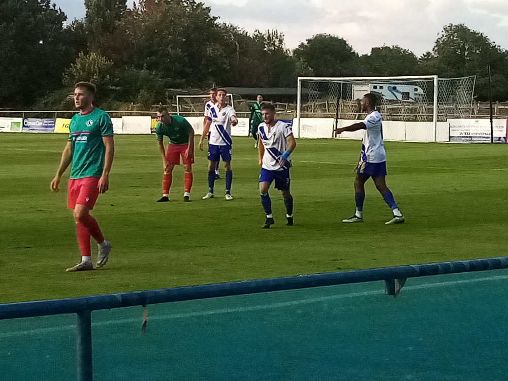 The home side did finally threaten in the half’s closing minutes as first Eniola Hasson thudded a drive into the chest of keeper Matt Larkin when he had the whole goal to aim at and then on the stroke of the whistle, Ollie Freeman’s dipping volley just did not dip enough.