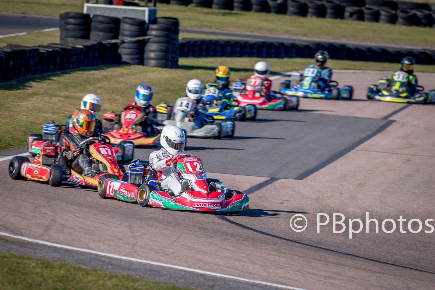Declan Lee heads a crossed up Riley Stephenson, on the 1st lap of the Junior Club Max final.