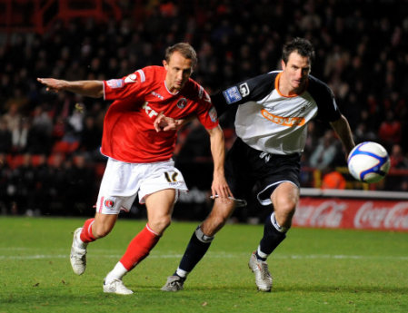 Charlton Athletic’s Paul Benson and Luton Town’s Zdenek Kroca.