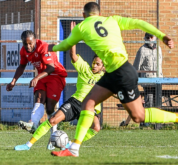 D’sean Theobalds was the other debutant, making his Welling bow in midfield having started the season at Dartford. Ben Allen also returned and came on as a substitute having left Welling earlier in the season to join Concord.