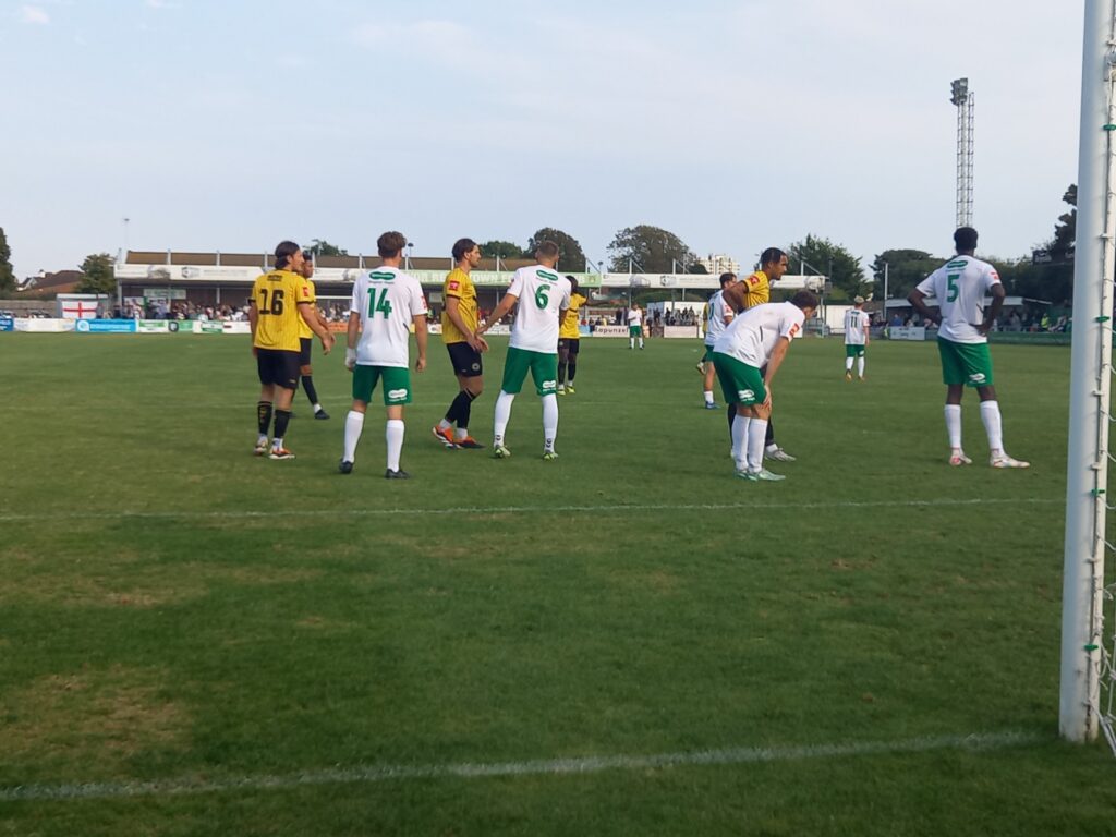 Then, Bognor Regis were awarded a free kick in a central position and Calvin Davies’ shot was pushed over well by Shaun Rowley. Bognor had to make an early substitution with Spencer Spurway coming on for Hayden Gale and then Hayden Vaughan shot over the bar.