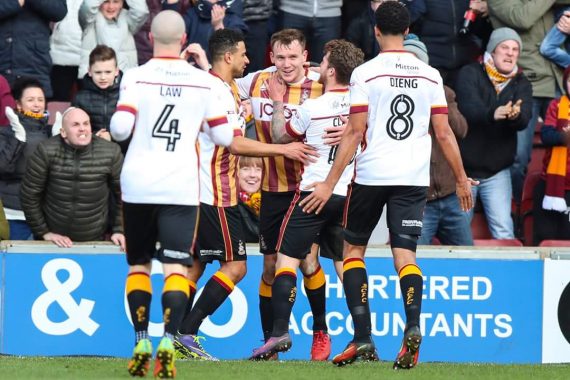 The Bantams took the lead when Wyke was fouled on the edge of the area and, after Billy Clarke’s free-kick was tipped on to a post by Stuart Nelson, McMahon tucked in the rebound.