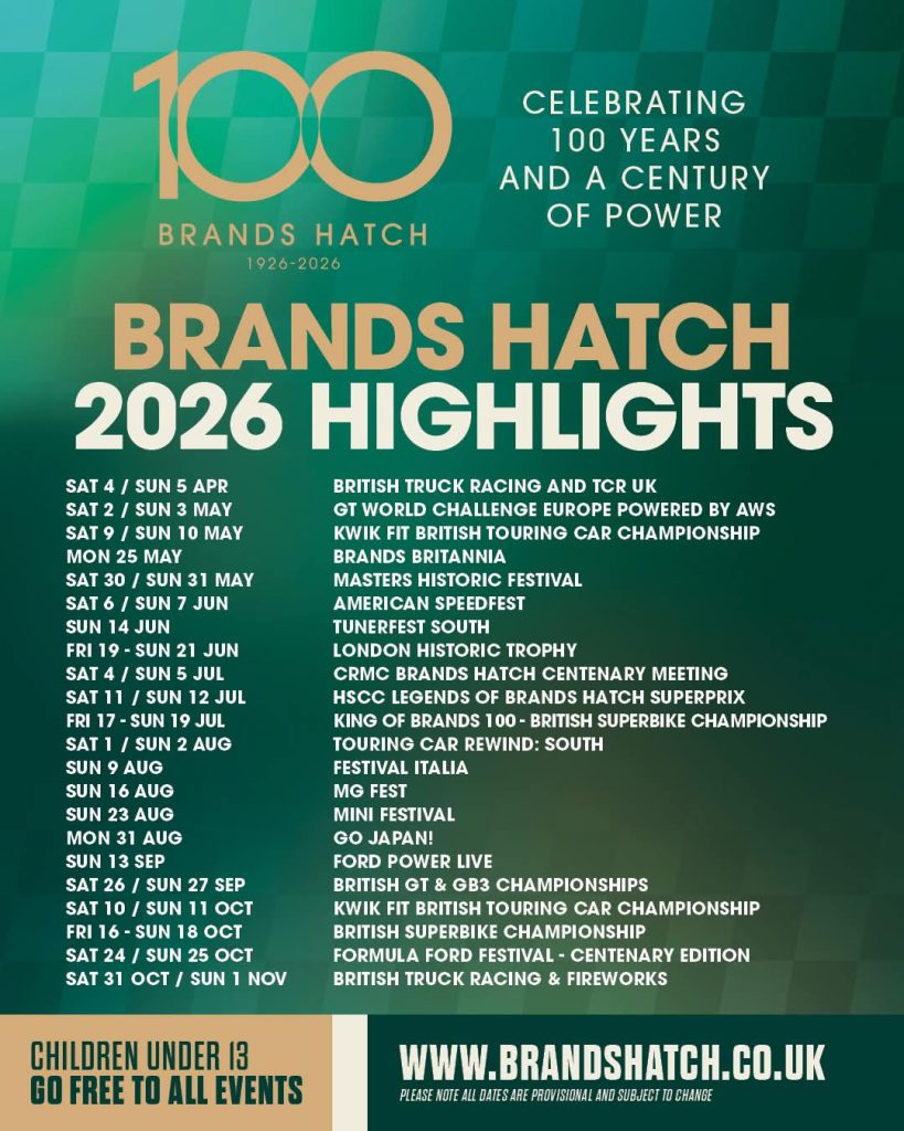 Brands Hatch has announced its centenary racing calendar this week, and there is an absolute feast of motorsport on both two, four and six wheels for fans to enjoy throughout the 2026 season.