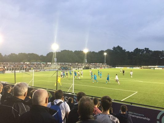 Bromley’s first effort on goal fell to Junior Ogedi-Uzokwe who curled an effort over from 20 yards out. The Bees continued to pin Bromley back Taylor had a header saved by Gregory from another cross from the left.
