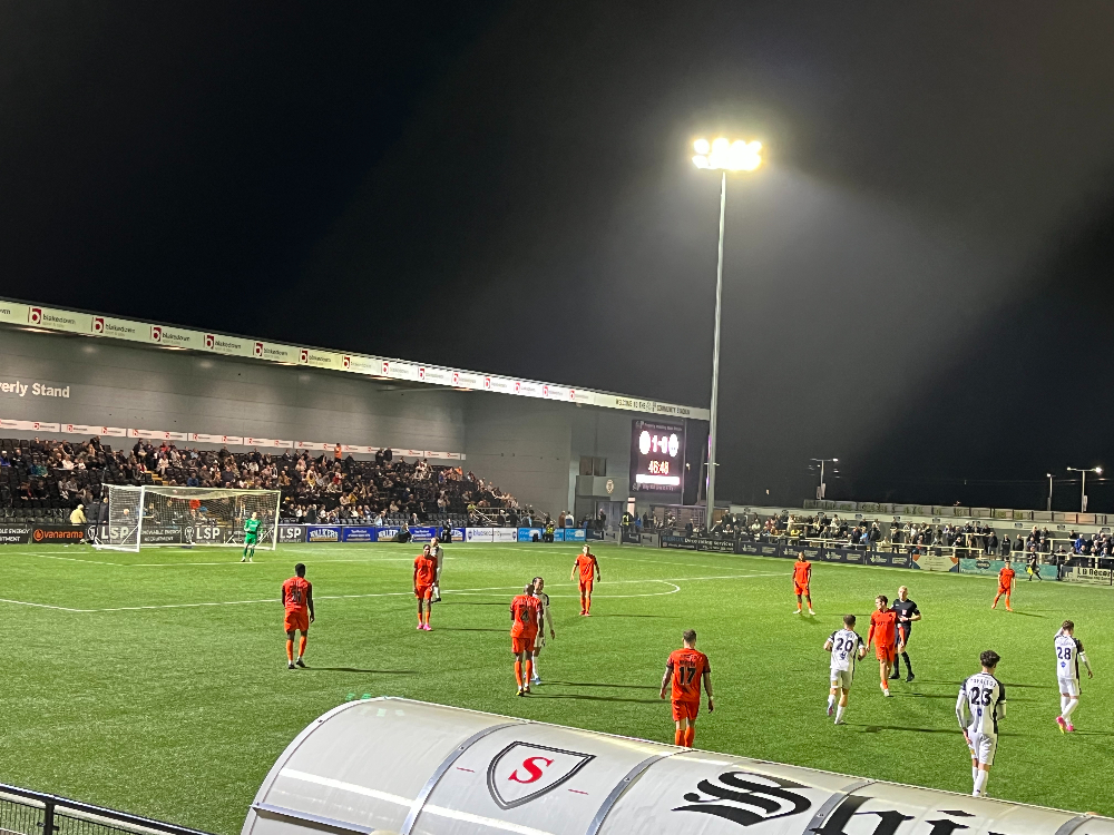 The match got off to a cagey start before it opened up and play went from end to end, but with few clear chances. Corey Whitely had an effort saved by Joe McDonnell as he latched on to a long ball.