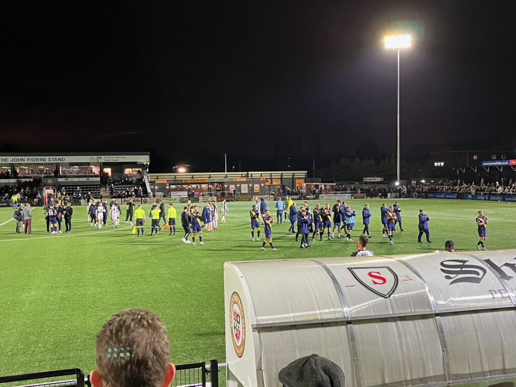 With the game heading into seven minutes of added on time, Altrincham sniffed an equaliser and pressed for a spell, but this time it was Bromley who broke away with Olomola almost completing a hatrick when shooting just wide.