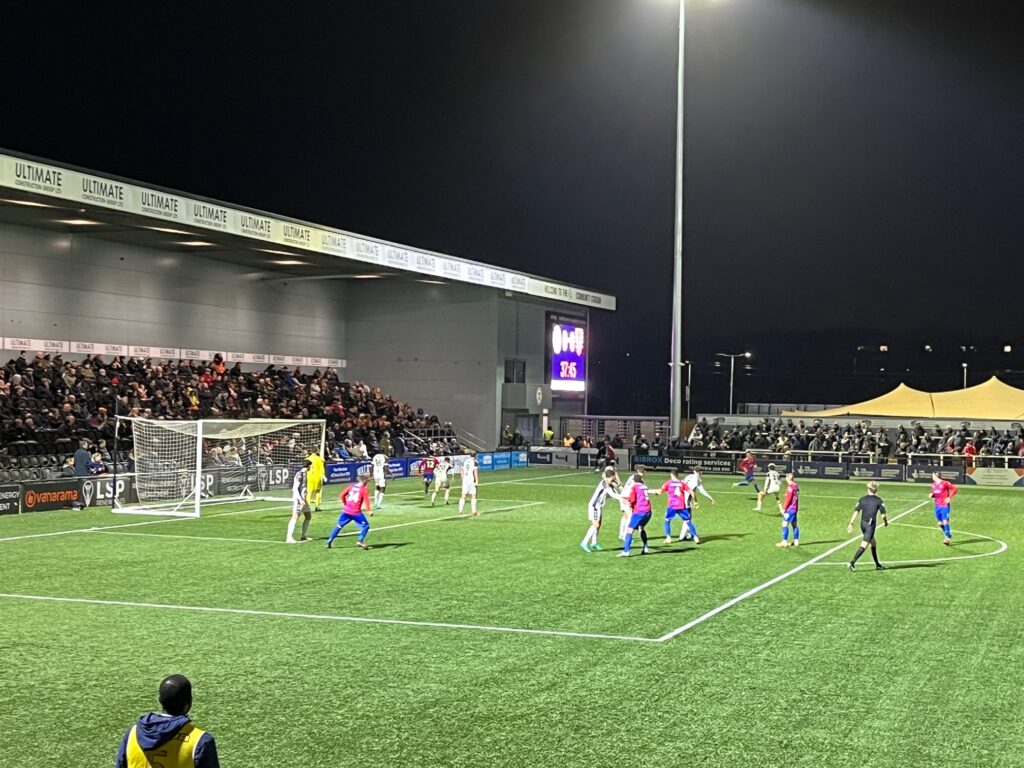 Then on a break from the pressure Bromley took the lead on 43 minutes, Krauhaus playing a superb defence splitting pass to Topalloj who coolly slotted the ball home for 1-0.