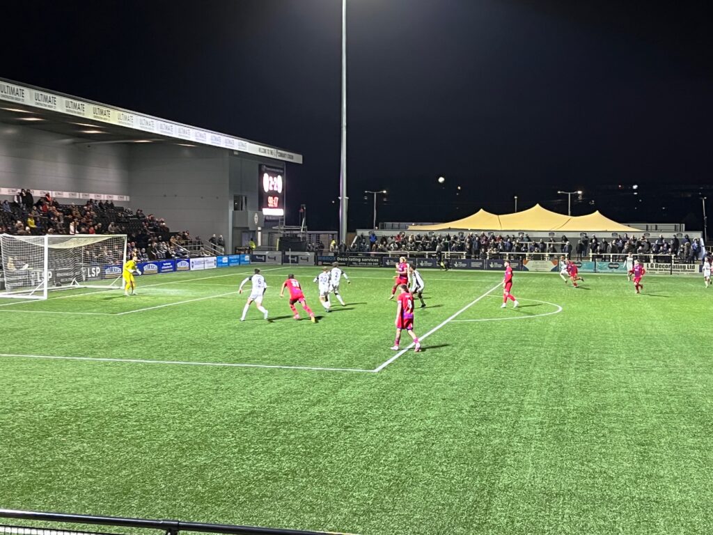 With The Shots now doing the majority of the pressing, Callum Reynolds made two vital blocks to deny Barham and Lorent Tolaj, while at the other end Besart Topalloj had a shot saved following a scramble in the area from a free kick.