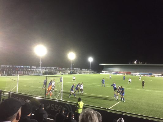 Bromley changed their shape for the second half going 4-4-2 and it paid off within ten minutes when a free kick from the right was headed against his own bar by Williams, before Roger Johnson bundled the ball home from the rebound. Three minutes later Bromley were in front when JJ Hooper broke clear of the home defence and beat Shwan Jalal from twenty yards with a powerful low drive into the corner of the net.