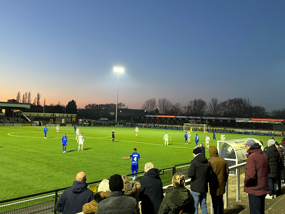 Both teams seemed to struggle in controlling the ball on the icy 3G surface, which has a large frost patch on it down in one corner by the Glyn Beverly Stand.