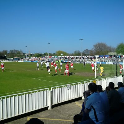 Lining up 4-5-1 with Ryan Hall at left back Bromley came un some early pressure from the visitors, Izael McLeod missing a glorious early chance when he put Iffy Allen’s cross over the bar from six yards out. The Ravens battled their way into things and went in front on 8minutes when Tobi Sho-Silva cut in from the left and his powerful shot deflected over Shawn Jalal and dropped in at the far post.