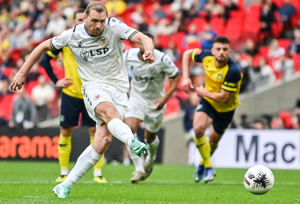With a raise of his eyebrows and a smile to the opposition keeper, already wearing an EFL captain’s armband he sent Hayes the wrong way and as the ball hit the net, The Ravens were promoted to the EFL.