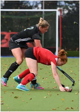 An early mistake from Jo Westwood in the heart of the Holcombe defence gifted Buckingham a rare opportunity to open the scoring but with Rose Thomas in the Holcombe goal beaten, Westwood recovered to save the original shot and win a free hit for her side.