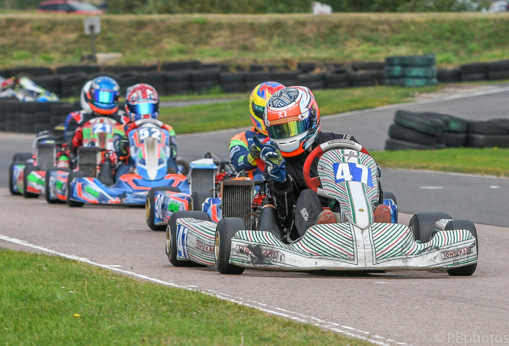 They exited the hairpin with Thomas leading, Lovegrove-Fowler in 2nd and Edgson now in 3rd. From that moment onwards the race settled down over the remaining laps, as Thomas went onto to take another class victory, Lovegrove-Fowler successful kept his nemesis Edgson behind to the finish to take 2nd place, Edgson was 3rd from the KRM kart of Goslett who had nipped ahead of Fallon just before the finish to take 4th.