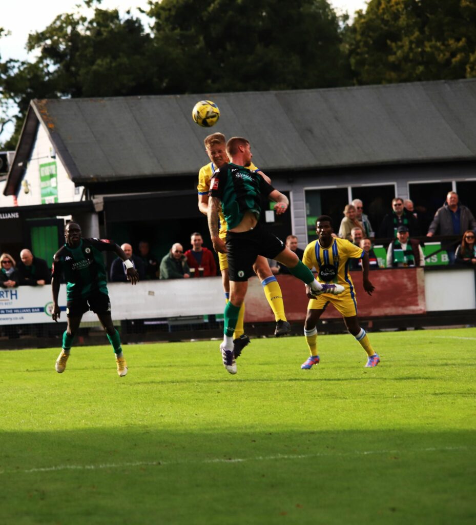 He though certainly got his targeting scanner right on 18 minutes. Dsean Theobalds played a lovely ball for Manny Osei-Owusu to run onto. His pinpoint cross to the back post was met by a flying Ayman who planted his header beyond the despairing dive of home keeper James Shaw.