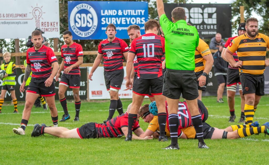 At the start of the second half and with the wind now in their favour, Canterbury raised faint hopes by making the first score. A yellow card for Blackheath’s Marcus Burcham brought a penalty and a catch and drive opportunity and Alex Evans got the touchdown.