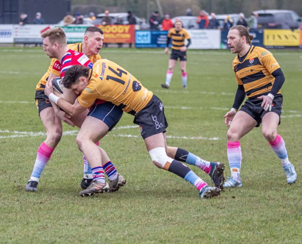 Lloyd converted all of them but there was last minute consolation for the city side when Sam Rogers, who worked tirelessly all day, forced his way over and Reynolds conversion ended a contest in which the title chasers were, unmistakably, the better side.