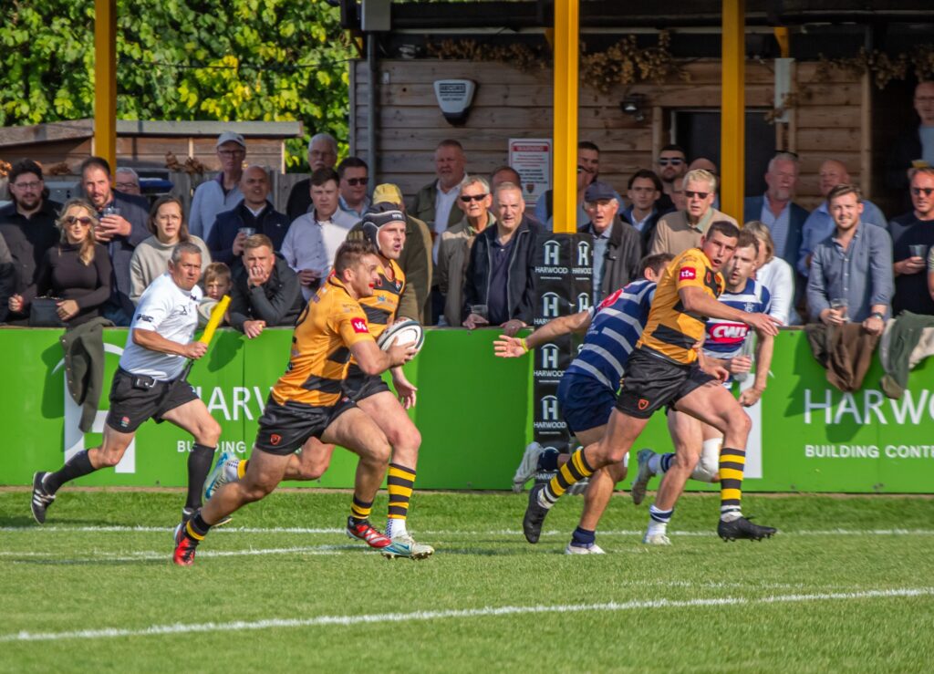 A close range try from Combe’s talented scrum half Mikel Davies put them temporarily back in the driving seat but at the break they were ahead by only five points as Reynolds calmly sliced the lead from two penalty chances. He kicked a third a minute into the new half but renewed pressure and an astute cross kick saw Ben Fryatt grab another unconverted score for the visitors.