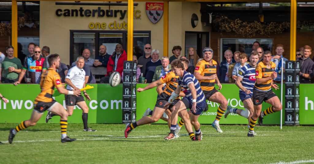 A Kent derby that went down to the wire saw Canterbury snatch their third consecutive victory with a try from the last play of the game.