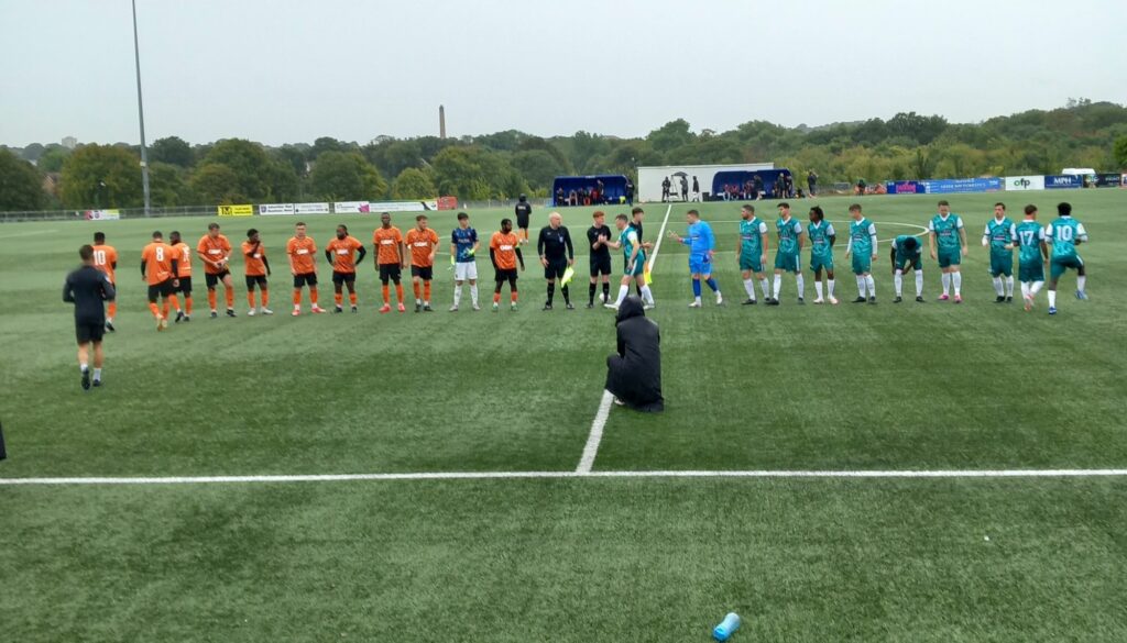 The game began in pouring rain – which continued right up until almost half-time with City starting strongly. In the first few minutes Harry Maher thrust forward only to see a shot blocked, Jamie Obianigwe brought the first save from FHP keeper Albert Penney – diving to his left to paw the ball away, while Mo Cham twisted and turned his way into the box before seeing a shot deflected out for a corner.
