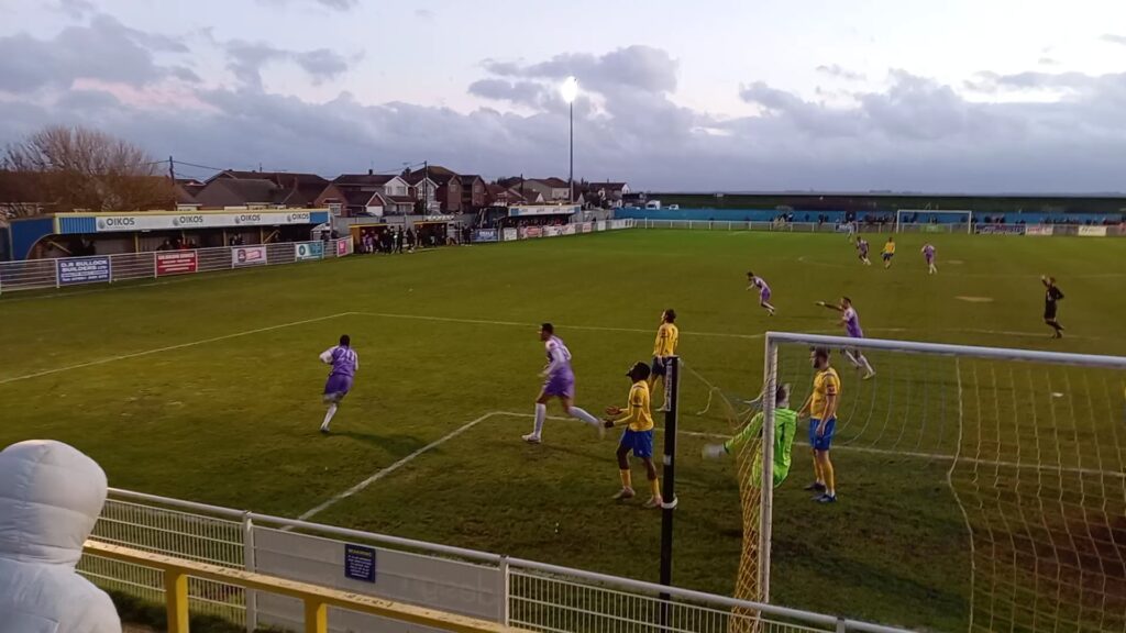 After a brace of corner kicks, Canvey went ahead in the 21st minute when Conor Hubble’s corner into the six yard box with Elliott Johnson looking to get a touch but the ball went into the net off Jalen Jones.