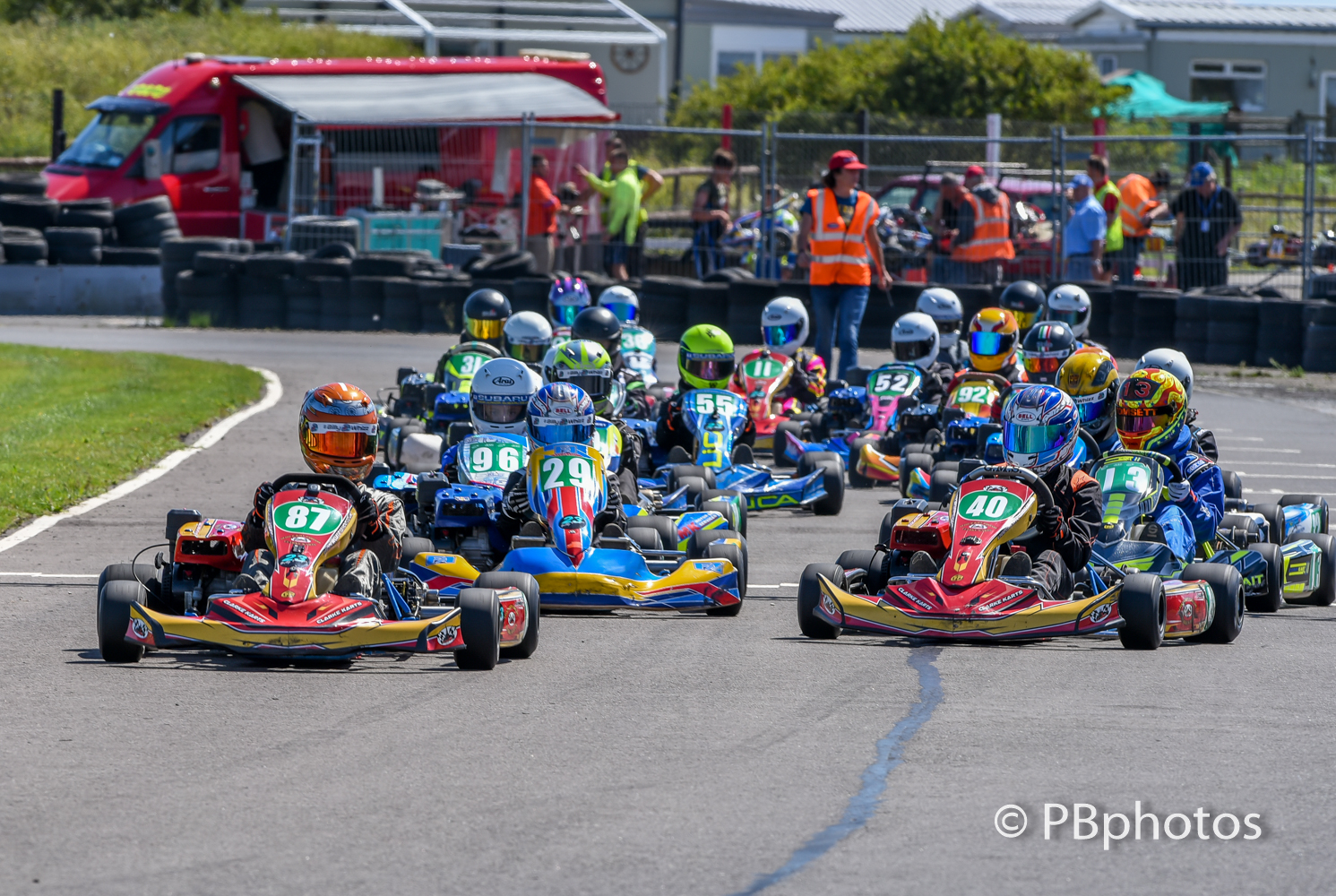 The Clarke Karts team lead away the Junior Subaru UK final.