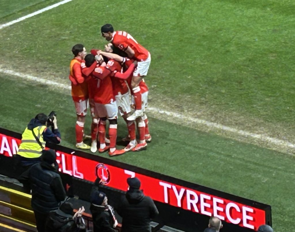 Ten minutes were left on the clock when the deadlock was finally broken. Dykes headed on a long pass forward sending Campbell through. His first touch looked a little heavy but he recovered to poke it wide of Simkin before planting it into the back of the net.