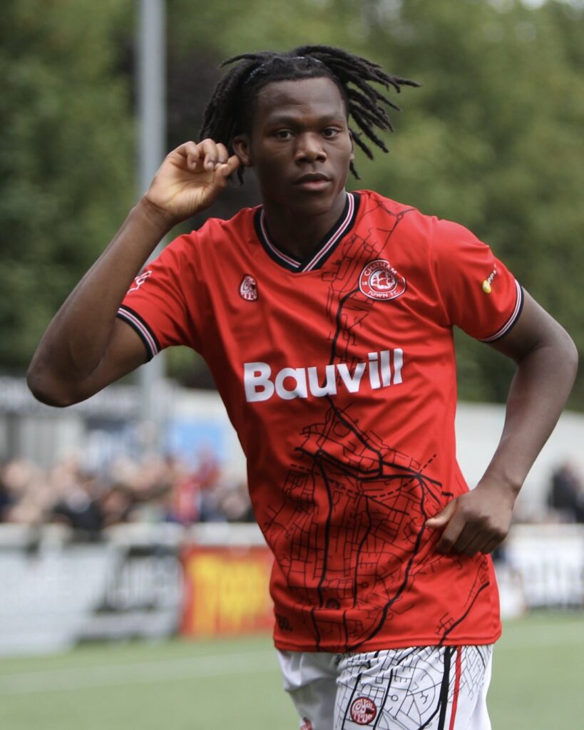 Seven minutes later another ball into the area was cleared but only to Dapo Olugbodi and his thirty-yard shot whistled past the post. In the 67th minute Chatham took a deserved lead when a long ball down the right found Sam Folarin who raced forward cutting in and from 20 yards his curling effort nestled in the bottom left hand net beating Edwards.