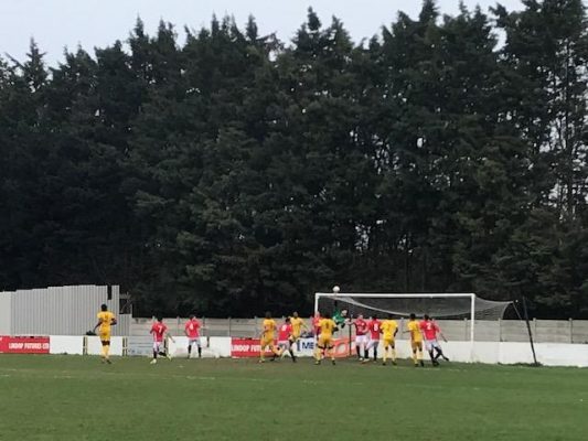 Chatham got the game underway and almost scored straight away after some good play earned them a corner on the 1st minute. The corner was played in and flew straight into Paul Vines who jumped up to reach the ball first, but his headed effort was comfortably saved by Danny Carpanini in goal. Chatham’s good start was then destroyed when Croydon went up the other end.