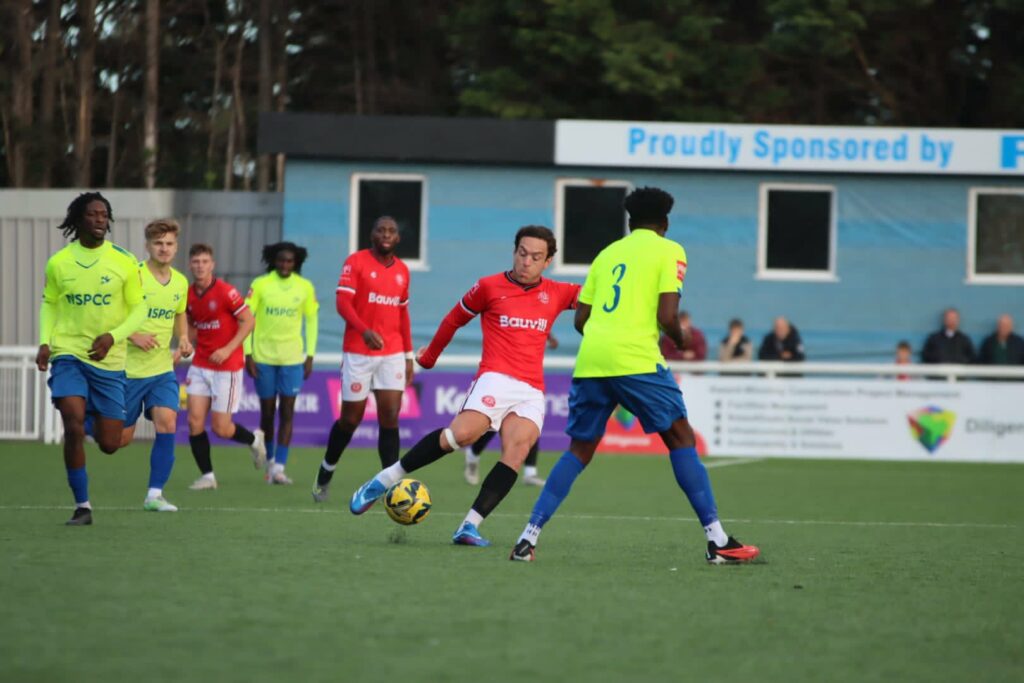 The game started slowly as second versus third in the league saw both sides giving the ball away, the first half chance came in the 10th minute when a Jack Evans free kick into the area found Tommy Fagg, his header goal wards was deflected away for a corner.