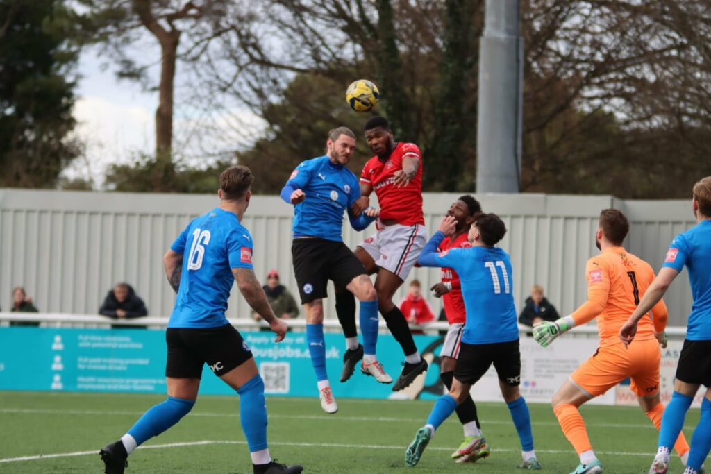 Then in the 42nd minute Billericay got their second when a Bradley Stevenson free kick from the right into the area found Frankie Merrifield who headed in from ten yards.