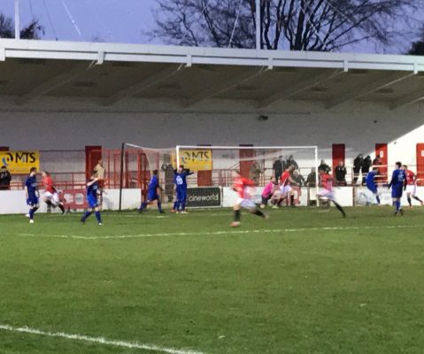 But Chatham wasn’t finished there as Jack Evans’ freekick from the left wing just skimmed the crossbar and then another freekick was intercepted just in the nick of time. Erith responded with a chance of their own when a shot from Russell Bedford forced an uncomfortable save from Ellis in the 63rd minute.