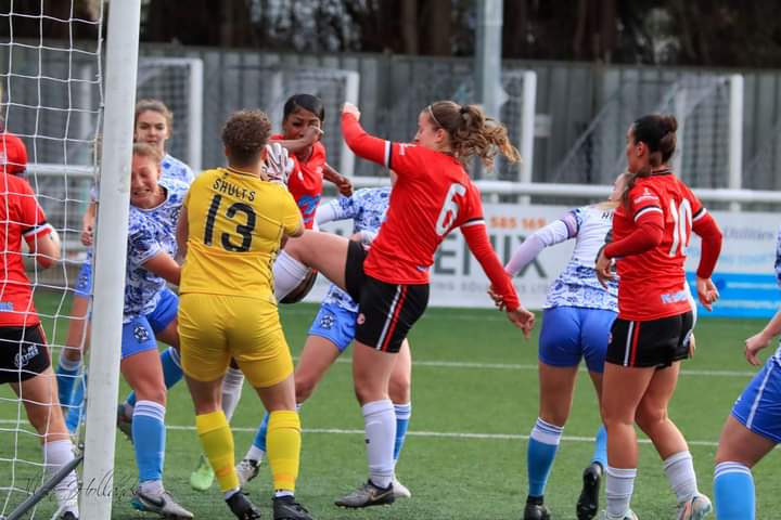 Sharp then saw another shot well saved before the home side were inches away from doubling the lead with the last play of the half as Charles raced away down the right and whipped the ball in towards King at the front post who missed the ball by a whisker whilst following up at the back post, Sharp’s control was brilliant but sadly her shot was magnificently blocked by a defender.