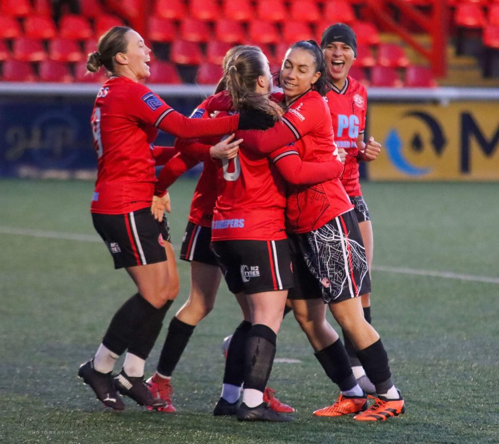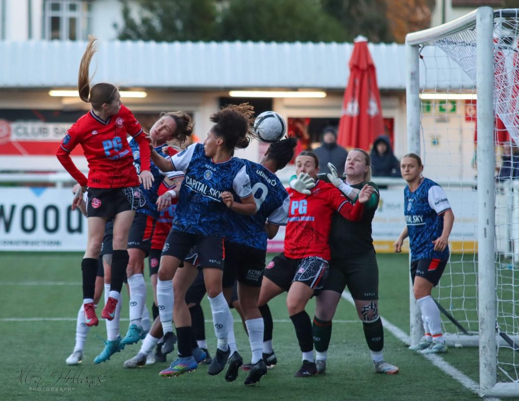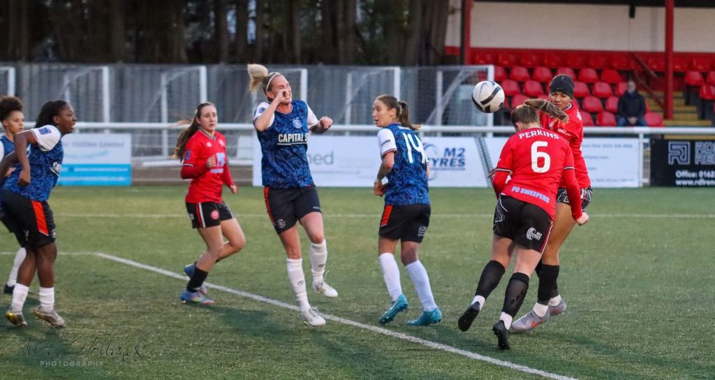 The visitors were crushed and the home side could have easily scored more – Woodgate and Jess King combined brilliantly down the right and King was only denied by a brilliant block at the near post as Woodgate whipped in a delightful ball, and then following a Perkins up-and-under, the ball fell to Summer Wiffen, whose first time shot didn’t miss by much.